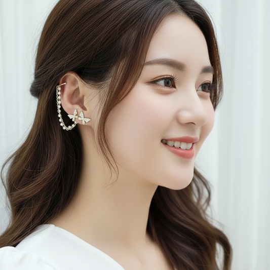 Earclip Butterfly Single Chain Earrings