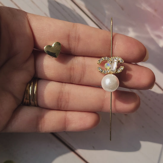 Transform your look with our elegant and versatile Pearl Ear Cuff. Made with stunning pearl, this cuff adds a touch of sophistication to any outfit. Say goodbye to boring and hello to effortless style. Make a statement and stand out from the crowd with our one-of-a-kind Pearl Ear Cuff! complimented with a Golden Heart Stud for the other ear.